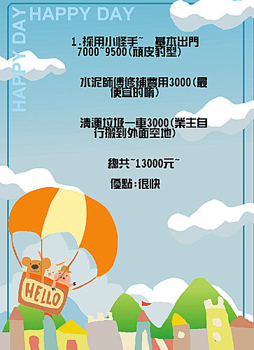 2.切割工程包含清潔現場 總共是8000元